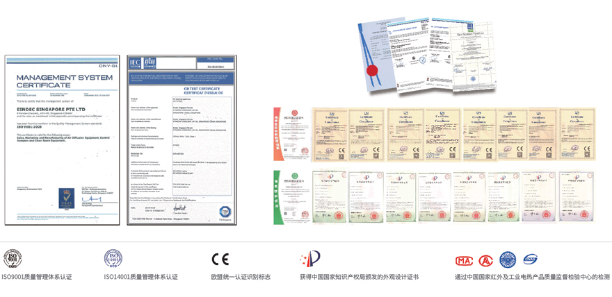 英德?lián)碛?0項(xiàng)新風(fēng)凈化行業(yè)領(lǐng)域?qū)I(yè)技術(shù),其中外觀發(fā)明專利2項(xiàng)。實(shí)用新型專利6項(xiàng),并獲得CE認(rèn)證,CB認(rèn)證,IOS14001、IOS9001、OHSMS18001認(rèn)證,產(chǎn)品性能檢測(cè)報(bào)告等多項(xiàng)資質(zhì)。